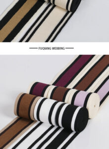 Our polyester elastic striped knitted tape is 4.0cm wide and made from strong polyester elastic yarn.